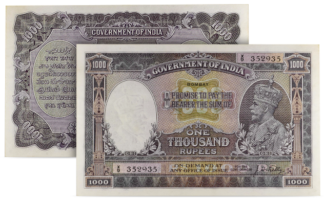 India - British Administration ND (1928) 1000 Rupees